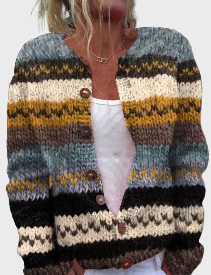 Pletený Kardigan S Pruhovaným Vzorem Inspirovaný Retro