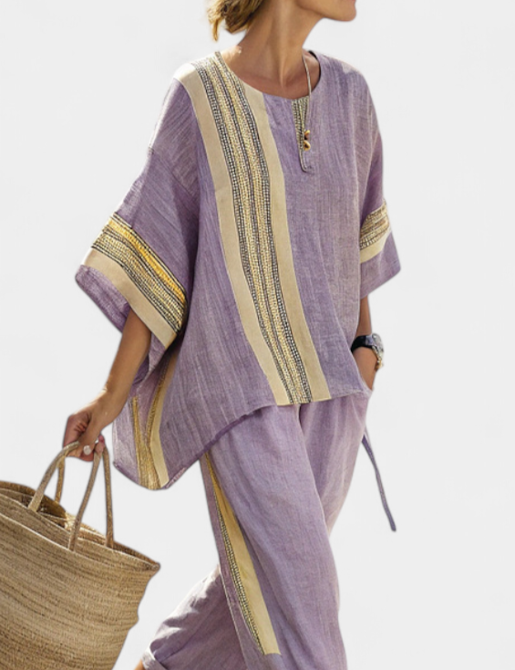 Sada z Lněného Bambusu Levandulová Detaily Hořčicově Žluté
