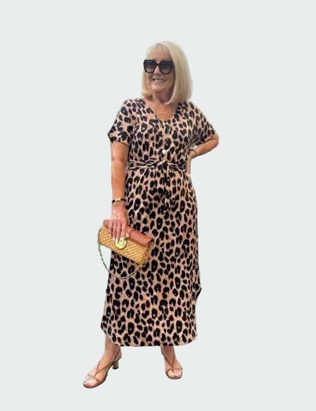 Šaty Leopardí Potisk S V Výstřihem Midi Délka Elegantní
