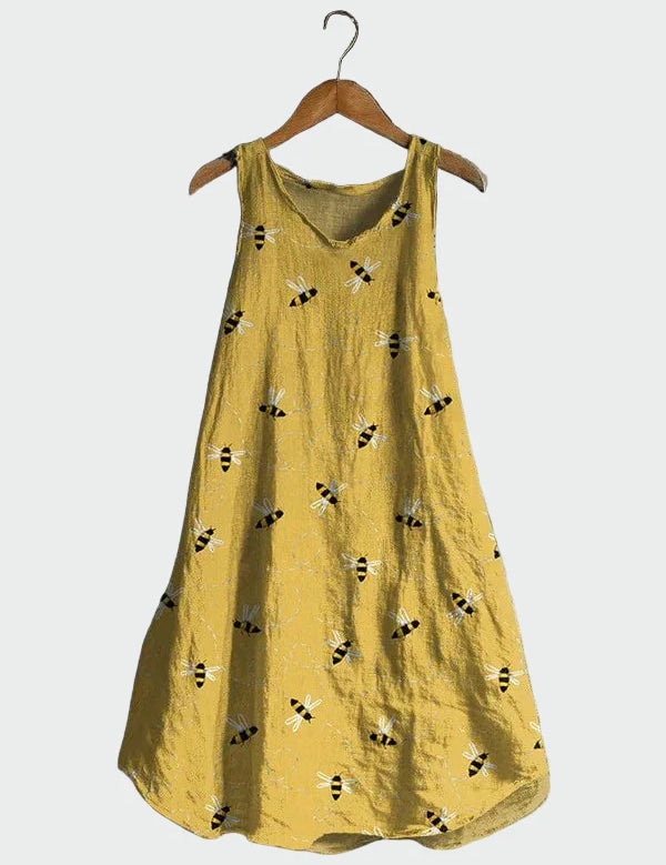 Šaty S Motivem Včel Letní Lehká Silueta Teplé Barvy