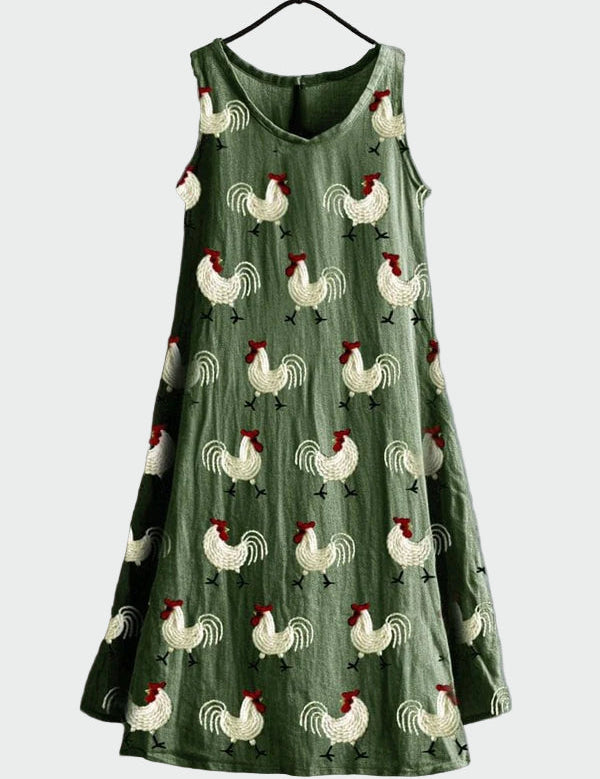 Šaty S Motívem Kohoutů Letní Lehký Střih Pohodlí