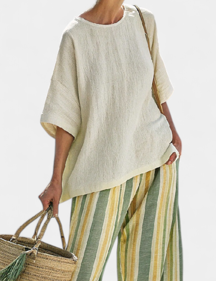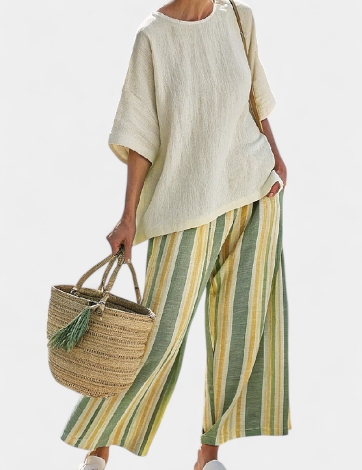 Souprava Daisy Z Lněného Bambusu Středomořský Styl Pruhy
