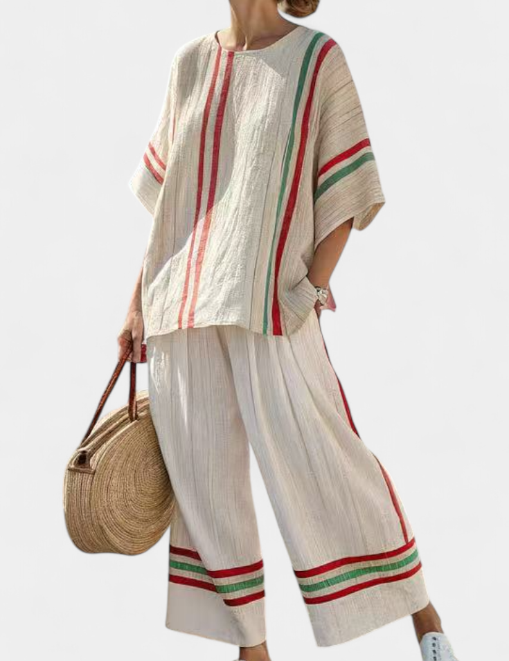 Středomořský Daisy Set Z Lněné Bambusové Látky S Pruhy