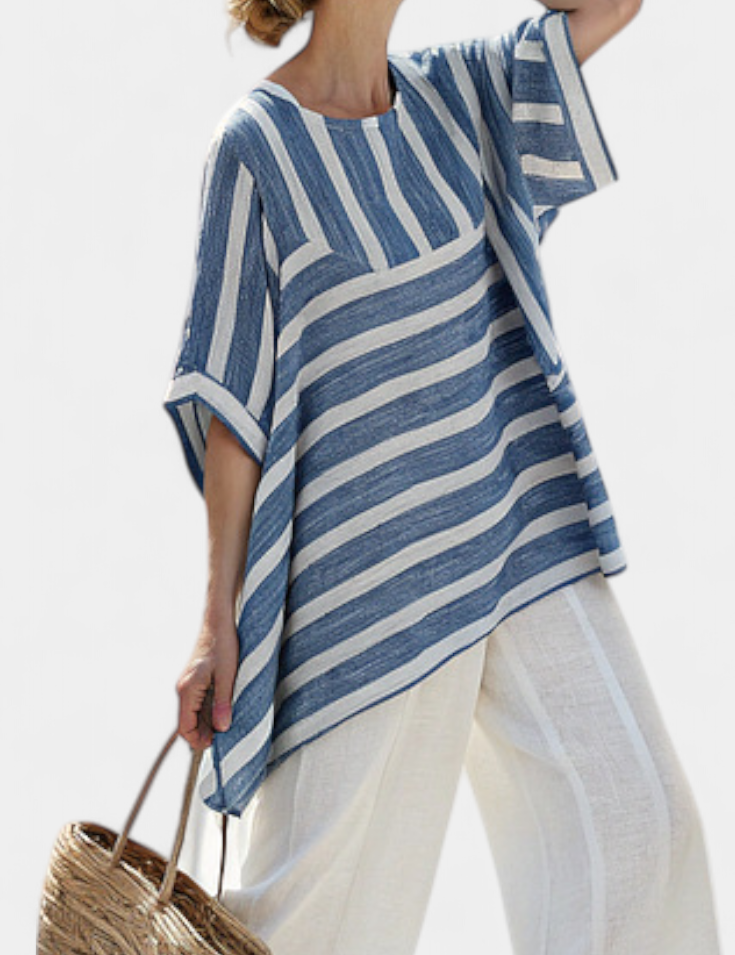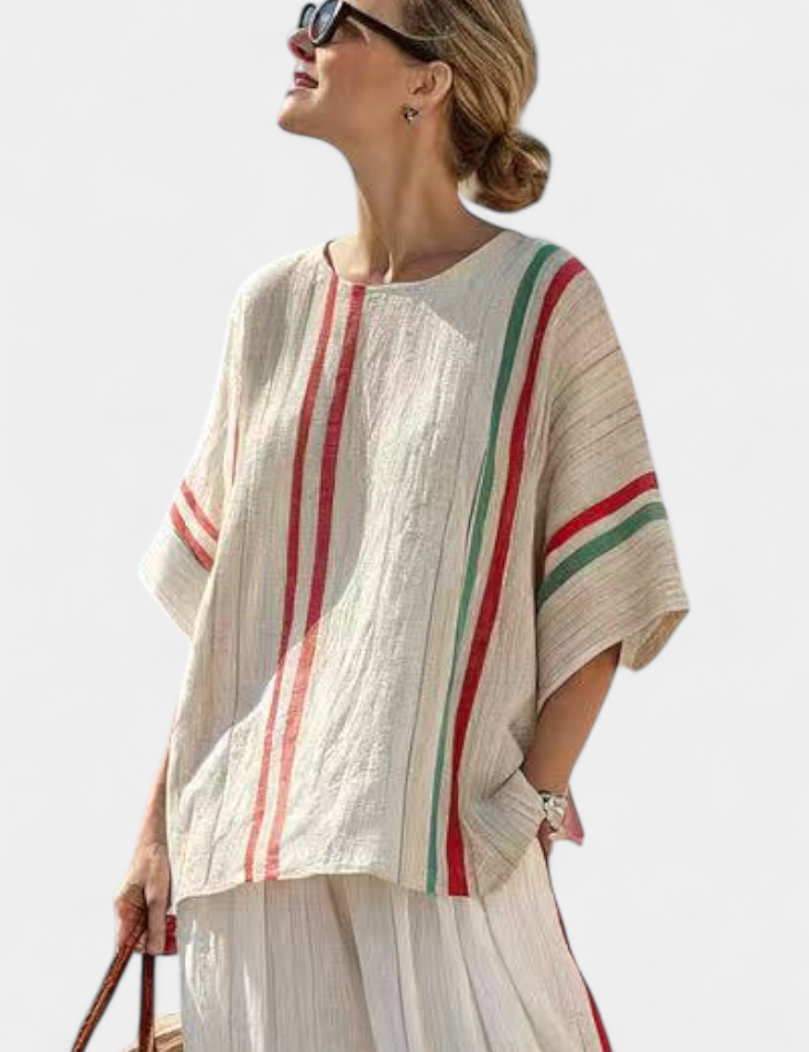 Středomořský Lněný Set Daisy Modré Pruhy a Kalhoty Letní