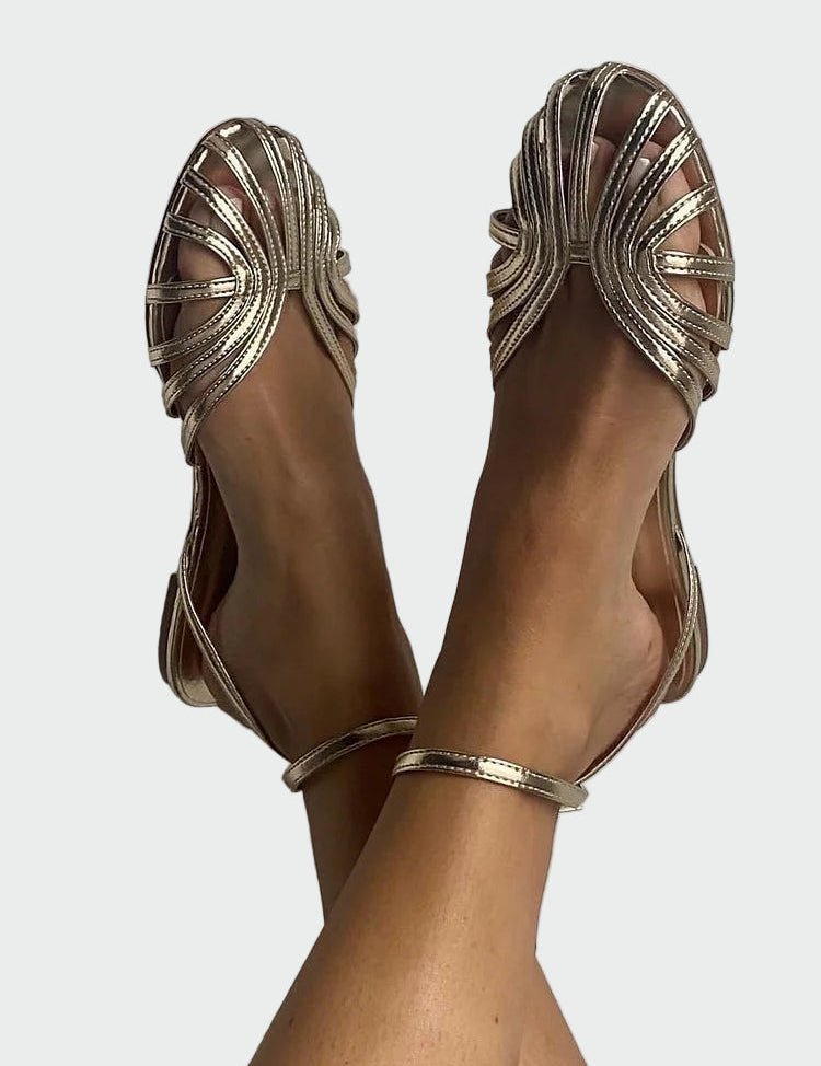Zlaté Baleríny s Pleteným Páskem a Kotníkovým Páskem