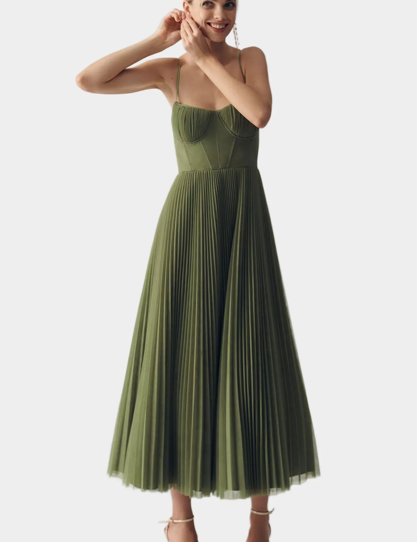Zelené Midi Dámské Šaty S Odhalenými Zády A Korzetem