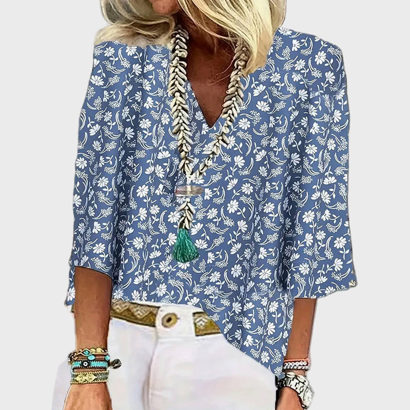 Modrá Blůza Aristokratický Lesk S Drobnými Květinami