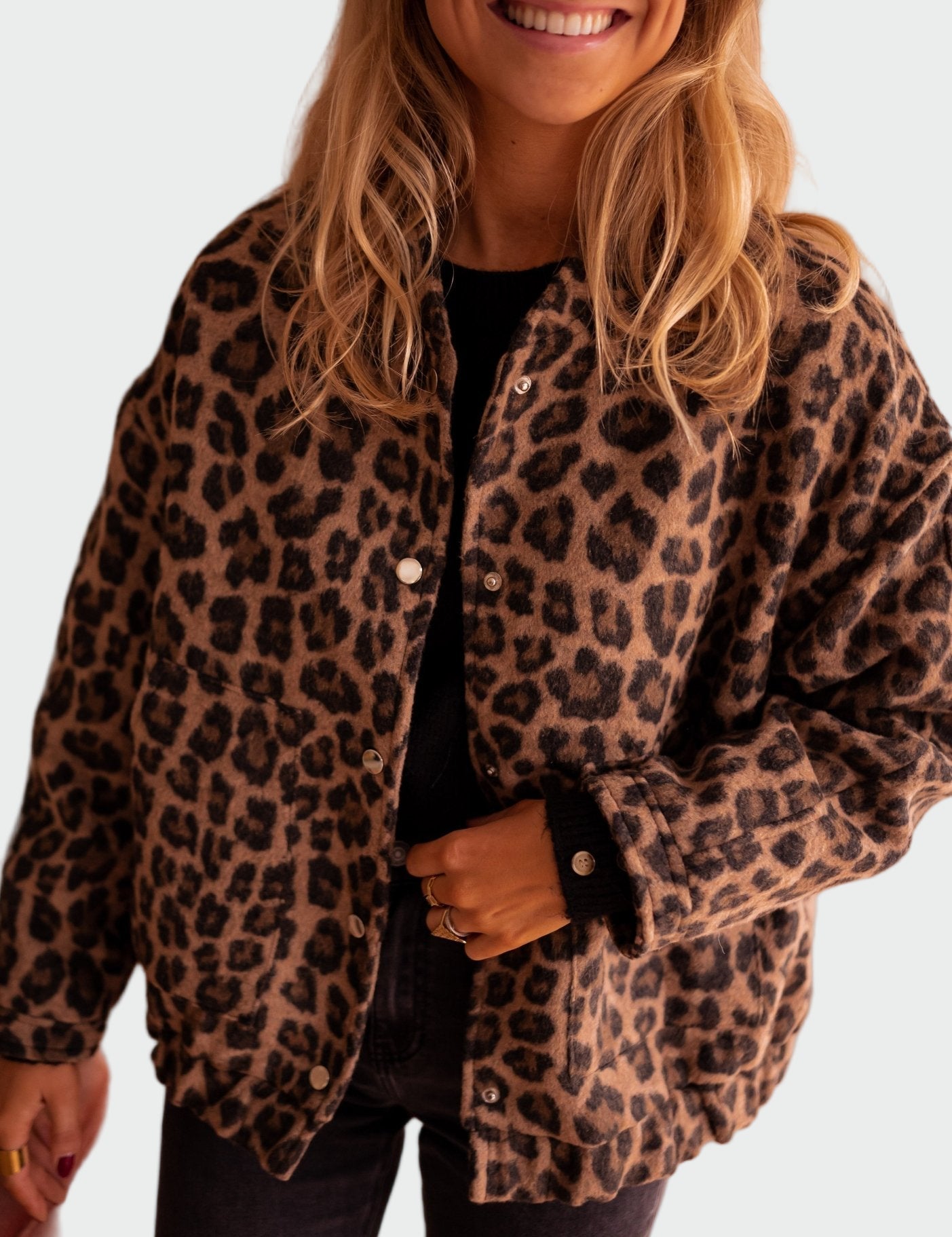 Moderní Sako Leopardí Vzor Frontální Zapínání Na Knoflíky