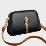 Elegantní černá kožená kabelka přes rameno s hnědými detaily přináší nadčasový styl a praktickou eleganci do vašeho každodenního šatníku. Kontrast černé kůže a jemných hnědých prvků působí sofistikovaně, zatímco zlatý kovový prvek na víku dodává dojem luxusu. Prostorný interiér a pohodlný ramenní popruh zajišťují vysoké pohodlí a funkčnost pro denní nošení i večerní příležitosti.