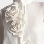 Elegantní Bílá Blůza s Trojrozměrnými Růžemi na Příležitosti