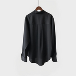 Obnovte svůj každodenní styl s touto elegantní košilovou halenou v šedo-modrém odstínu. Bílý límec dodává moderní akcent a svěží kontrast ke klasickému střihu.