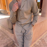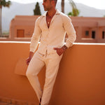 Auckland Lněný Set je prodyšná volba pro muže, kteří ocení lehkost materiálu a svěží styl. Tento set je vyroben z 100% lněného vlákna a nabízí uvolněný, ale stále upravený střih, ideální na horké dny, dovolené a stylové volno.