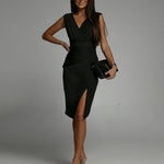 Elegantní Midi Šaty S V Dekoltem A Rozparkem Pro Slavnost