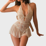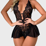 Toto smyslné krajkové body v černé barvě spojuje jemnou krajku s průsvitností pro zcela ženský a svůdný vzhled. Díky odvážným průstřihům a květinovým detailům krásně zvýrazňuje linii těla, zatímco krátký volánek na spodní části dodává hravý a elegantní šmrnc. Ideální volba pro speciální okamžiky a romantické večery.