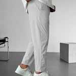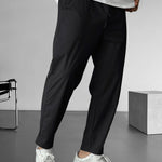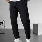 Elegantní zúžené kalhoty se šňůrkou v pase spojují precizní střih s pohodlím volnočasového oblečení. Tyto pánské kalhoty nabízejí sofistikovaný vzhled na pracovišti i při cestování, s moderním tahem a relaxovaným komfortem pro každodenní nošení.