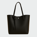 Nadčasová černá taška do ruky s minimalistickým designem. Tento tote kombinuje jednoduchost a eleganci, díky čistému liniím a diskrétnímu detailu na popruhu získáváte jedinečný charakter, který se hodí ke každému outfitu.
