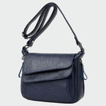Elegantní černá kabelka přes rameno s výjimečným klopovým uzávěrem, který dodává moderní geometrický vzhled. Tento nadčasový kousek spojuje styl a praktičnost a hodí se jak do každodenního, tak do sofistikovanějšího outfitu.