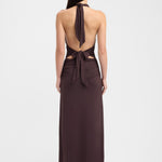 Elegantní maxi šaty s halter výstřihem vyzdvihnou vaši ženskost a sebevědomí na každém večerním setkání. V tmavě hnědé barvě jako čisté linie představují nadčasový vzhled, který se hodí pro zvláštní příležitosti i slavnostní večery.
