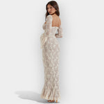 Elegantní a vzdušné maxi večerní šaty, které vyzařují diskrétní luxus a ženské sebevědomí. Maxi střih s plynulou linií dodává šatům lehký pohyb a dokonalou harmonii na každé postavě.