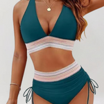 Objevte jedinečný letní styl s tímto setem bikin s vysokým pasem a podpůrným systémem pro bříško. Tento plavkový set spojuje ženskost, komfort a oporu v jednom — ideální pro pláž i bazén.