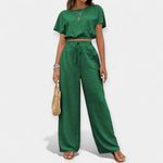 Stylový Letní Volný Fit Set S Krátkým Topem A Vysokým Pasem