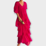 Představujeme vám dlouhé šaty s lehkou, vzdušnou linií a nadčasovou elegancí, které podtrhnou každou chvíli jemností a stylem. Tento kousek kombinuje praktičnost s vytříbeným vzhledem a díky uvolněnému střihu umožňuje pohodlný pohyb po celý den i večer.