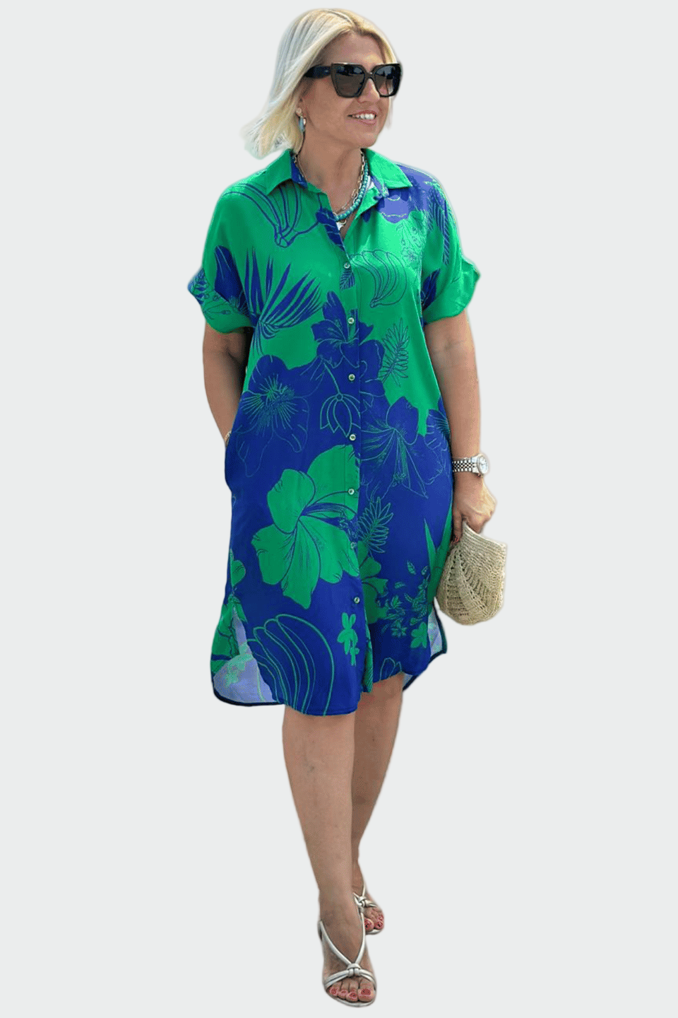Živé barvy, které okamžitě upoutají pohled, a pohodlný volný střih zajišťující pohodlí i po celý den. Krátké rukávy dodávají šatům svěží a prodyšný pocit, ideální pro horké letní dny.