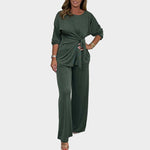 Objevte pohodlí a styl s naším dámským 2dílným setem s dlouhými rukávy a pohodlným střihem. Blůza s uvázáním v pase krásně zvýrazní siluetu a kalhoty s volným, širokým střihem zajišťujícím snadný pohyb po celý den. Barva tmavě zelená dodává vzhled moderní a sytý nádech, který se hodí pro každou příležitost. Tento set je ideální pro každodenní nošení a lehké volnočasové aktivity, ať už jdete do práce, na kávu nebo na procházku.