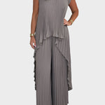 Obnovte svou garderobu stylovým setem v klasické šedé barvě, která spojuje elegantní pohyb plisovaného materiálu s pohodlím volných kalhot. Ideální volba pro formální výlety i každodenní luxus.